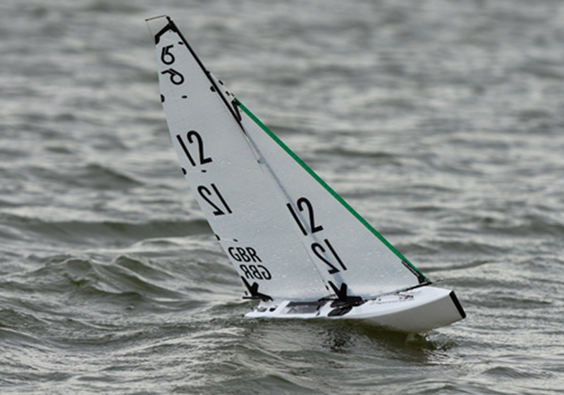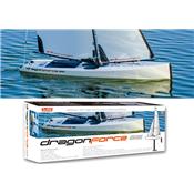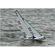 Coque peinte moulée en ABS, Mats en fibre de carbone et bômes en fibres, quille en aluminium avec lest en zinc, voiles en film Mylar de 50 microns avec logos et bandes imprimées, servo de direction digital avec pignons en métal, puissant servo treuil, stand de présentation moulé en plastique avec tubes en fibres de verre.
