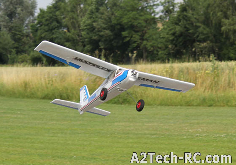 Equipé d'origine avec une gouverne de direction, une gouverne de profondeur et un motorisation généreuse, vous avez la possibilité de le passer en trois axes, avec le "Set upgrade ailerons" (# 65164). Cet avion pour débutant devient alors une formidable machine pour la découverte de la voltige de base. C'est le compagnon idéal pour progresser en vol.