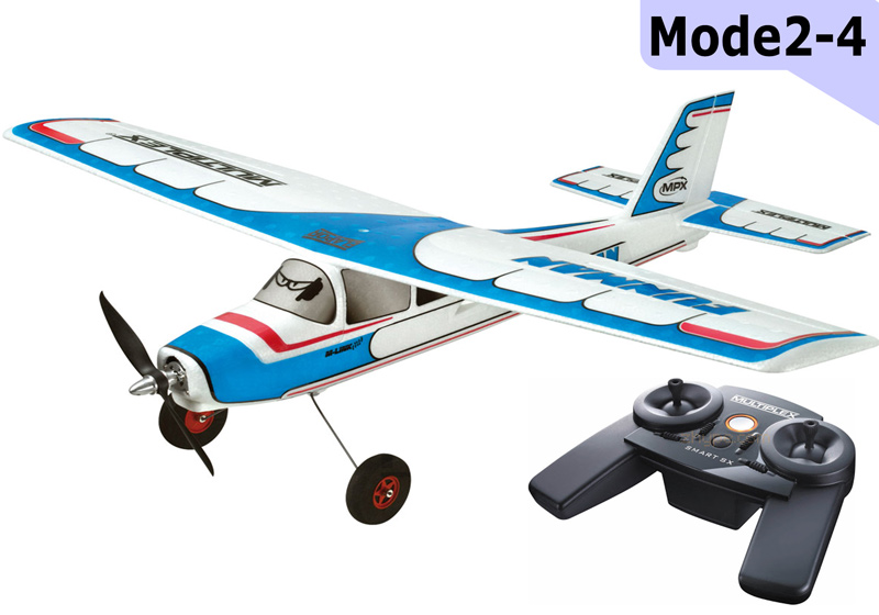La radiocommande Multiplex SMART SX incluse dans la boite contient en mémoire tous les réglages d'origine du Funman. Plus tard, le récepteur sera 100% compatible avec tous les émetteurs M-LINK tel que le Cockpit SX, le Royal Pro ou le Profi TX..