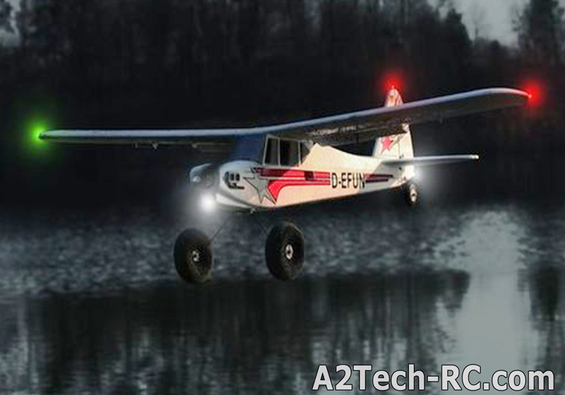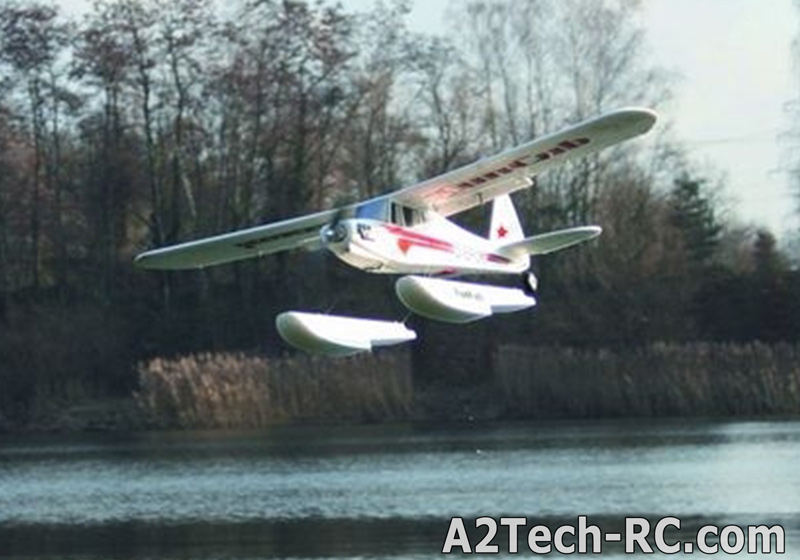 De plus, les distances de décollage et d'atterrissage sont très courtes. A cela, il faut ajouter vos talents de pilote pour une voltige spectaculaire. De grands volets, de grandes roues, une grande hélice et une motorisation avec de la ?pêche", exactement ce qu'il faut pour cela. En outre, avec le FunCub, vous pouvez remorquer les planeurs de vos collègues modélistes. Pour cela, il suffi t d´activer le crochet de remorquage. Equipé de fl otteurs, le FunCub se transforme en un merveilleux hydravion.