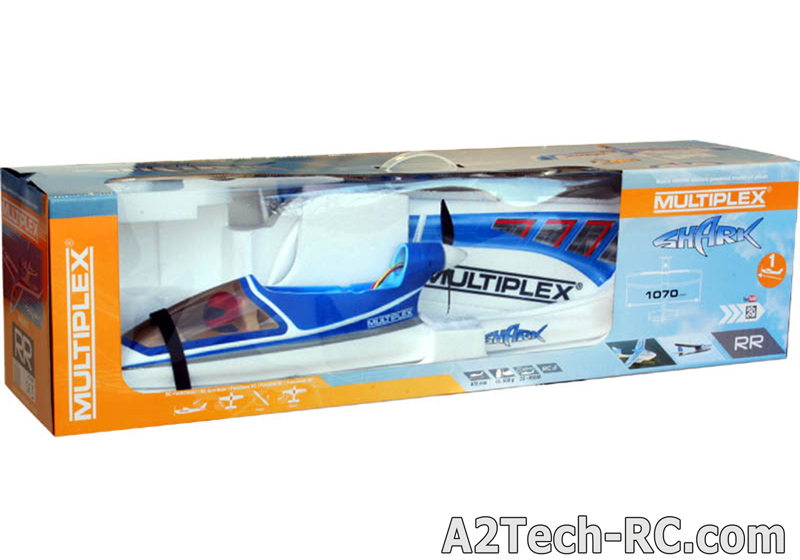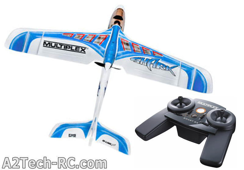 Le concept de l'EasyStar II est à la base de ce nouveau modèle entièrement pré assemblé : aile haute, moteur derrière le haut de la cabane, aile polyvalente 2 axes conçue pour la pose des servos d'ailerons optionnels, démontage facile. La taille est réduite à une envergure de 1m07 pour un modèle compact et facile à transporter dans sa boite d'origine. La motorisation est généreuse : moteur PERMAX BL-O 2816-1450, hélice 5,5x4,5", contrôleur MULTIcont BL-12... Le MULTIPLEX SHARK RTF un ensemble complet avec sa radiocommande 2.4GHz SMART SX 6, sa batterie Li-Po 3S/950 et son chageur !