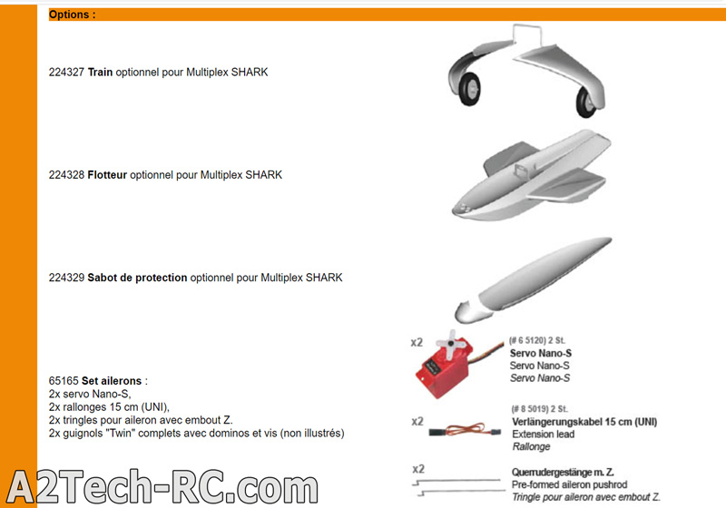 - Voici le SHARK transformé en hydravion (224328 Flotteur optionnel pour Multiplex SHARK), parfait pour se poser également dans une neige souple