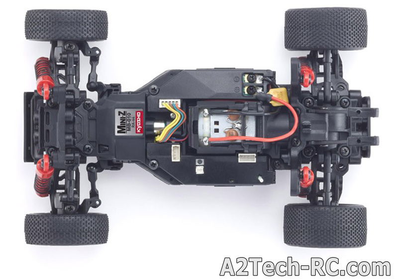 A l'intérieur de la carrosserie se cache le dernier cri en technologie de conception R / C. Le châssis dispose d'un arbre d'entraînement 4 roues motrices et de deux différentiels. Les quatre roues sont indépendantes et à double triangulation, tout comme l'original Optima 1 / 10 Racing Buggy. Le résultat est la performance exceptionnelle concentré dans une machine de course qui tient dans la paume de votre main. Jamais une Mini-Z n'auras eu de telles performance.