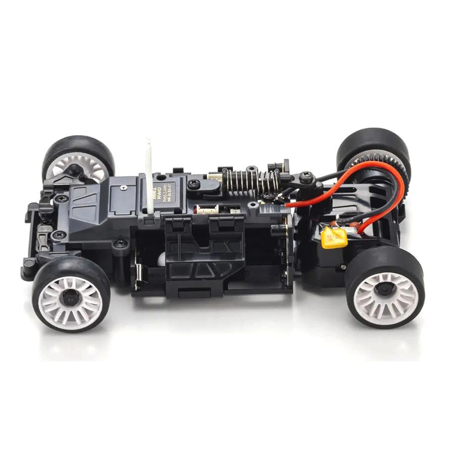 Vivez l'expérience complète des courses de voitures radiocommandées hautes performances dès la sortie de la boîte ; il suffit d'insérer les piles dans la voiture et l'émetteur. C'est la simplicité des packs Kyosho Readyset. Le format compact de la MINI-Z Racer est idéal pour la conduite en intérieur et pour ceux qui découvrent les voitures radiocommandées. Ce pack MINI-Z RWD Readyset comprend un châssis 2 roues motrices repensé. Les packs Readyset précédents intégraient le châssis MR-03 de 3e génération, mais le nouveau pack RWD Readyset inclut le châssis MR-04 de 4e génération, lancé pour la première fois en 2023. Tout en conservant certains éléments de base du design du MR-03, le nouveau MR-04 affiche un centre de gravité plus bas et une direction remodelée, avec une vitesse fulgurante et une excellente maniabilité dans le modèle haut de gamme EVO2. Le châssis MR-04 est équipé d'un système radiocommandé et présente une carrosserie complète aux normes des modèles d'exposition. Ce Readyset comprend le même châssis MR-04 standard que les autres modèles MR-04 haut de gamme, ainsi qu'un moteur à balais classe 130 convivial et un émetteur à poignée pistolet Syncro KT-531P fiable. Insérez simplement 4 piles alcalines AAA dans la voiture et l'émetteur, et le plaisir commence. La configuration standard offre des performances élevées, mais vous pouvez atteindre des performances de haut niveau grâce à une large gamme de pièces optionnelles MINI-Z. Avec sa finition de modèle d'exposition à maniabilité dynamique, le châssis MR-04 mis à jour propulse l'expérience RC authentique à un niveau supérieur.