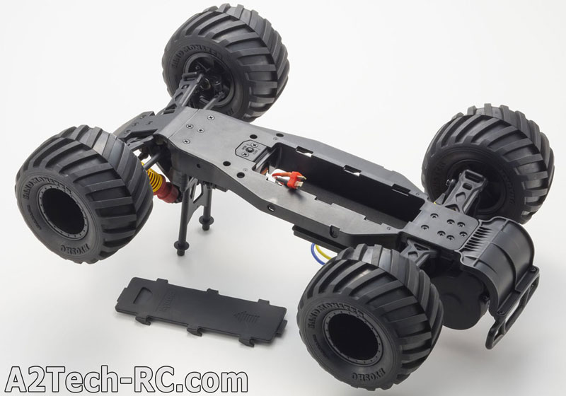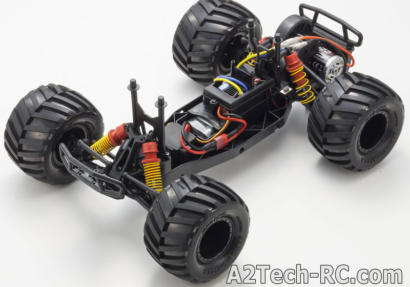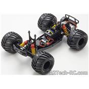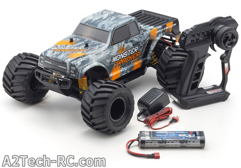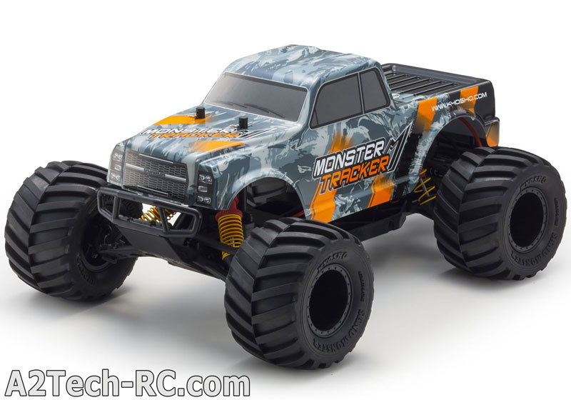 Le Kyosho Monster Tracker avale les obstacles avec facilité grâce à des énormes pneus et à ses gros amortisseurs. Sa carrosserie de pick-up américain s'inspire des célèbres big-foot qui écrasent tout sur leur passage ! Conçu sur la base du buggy EZ-Series ( Axxe, Sandmaster...) le Monster Tracker dispose d'une mécanique éprouvée et facile à mécaniser, même pour les plus jeunes modélistes ! une trappe permet d'accéder facilement à la batterie sous la voiture, et la partie radio est à l'abri de la poussière dans un compartiment spécialement étudié.
