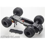 Le Monster tracker est entièrement assemblé en usine, monté et décoré. Il ne reste qu'à charger la batterie de propulsion et installer des piles ou batteries dans l'émetteur pour pouvoir aller jouer en pleine nature ! Caractéristiques techniques :
