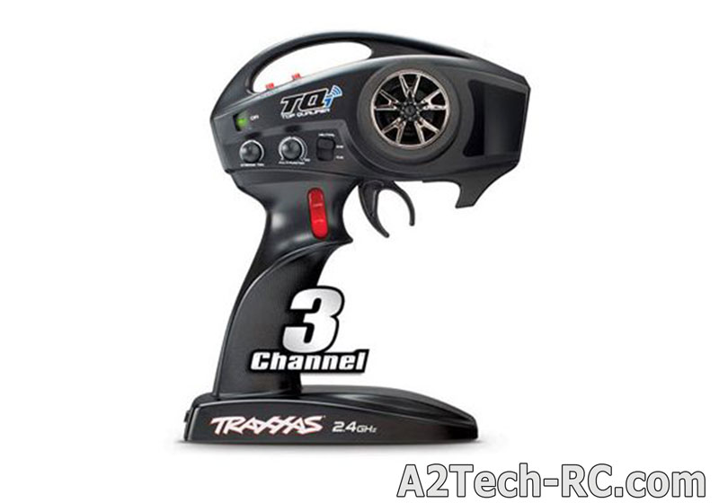 Ce véhicule prêt-à-rouler est doté d'un équipement radio très élaboré, le plus avancé au monde. Le tout nouvel émetteur Traxxas TQi est livré avec de larges possibilités de réglages et fournit tous les avantages liés à la technologie du 2,4GHz. Terminés les quartz et les fréquences à sélectionner. Cette technologie permet également la reconnaissance automatique du modèle en chargeant directement les réglages qui lui sont propres. Mettez simplement sous tension l'émetteur et votre véhicule et roulez : vous n'aurez pas besoin de sélectionner le modèle et de faire ainsi appel à la mémoire de l'émetteur. Le nouvel émetteur TQi 2,4GHz est totalement configurable : les fins de course de la direction et des gaz peuvent être réglées avec précision et le potentiomètre multi-fonctions peut être programmé pour ajuster la sensibilité de la direction (Expo), la sensibilité des gaz (Expo), le pourcentage de la direction (Double débattements / Dual Rate), le pourcentage du freinage (Double débattements / Dual Rate), ou le trim des gaz. Le boîtier de la TQi possède un design ergonomique pour fournir au quotidien un confort de pilotage et l'antenne intégrée contribue à harmoniser l'ensemble en conférant une apparence moderne.