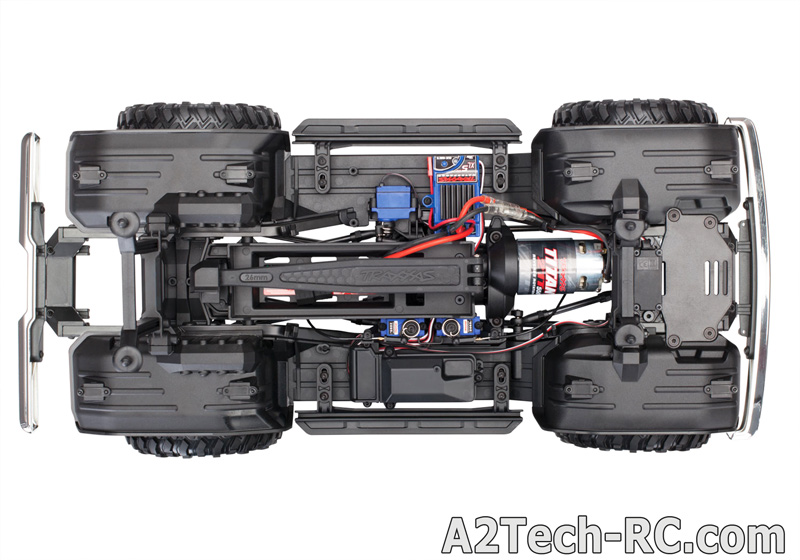 Les angles d'attaque avant et arrière permettent au TRX-4 d'absorber les obstacles « bille en tête ». Le moteur placé sur l'avant permet une répartition de poids pour une meilleure attaque dans les cotes par rapport à d'autres conceptions de châssis.