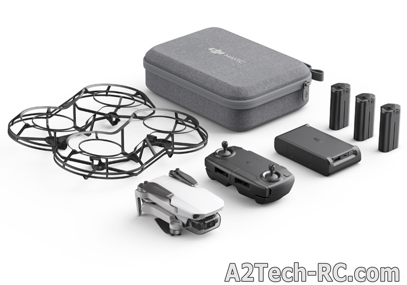 Retrouvez tous les éléments du Mavic Mini accompagnés d'accessoires supplémentaires pour décupler les possibilités d'utilisations de ce drone DJI. Les 3 batteries vous donneront 1h30 d'autonomie, soit 3 x 30 minutes. La protection d'hélices se clipse sur les deux moteurs, à gauche et à droite, et vous donnera la possibilité de voler en intérieur en toute sécurité.