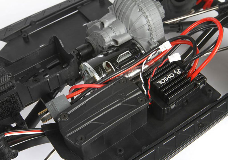 Le Nouveau Crawler SCX10 II Jeep Wrangler Rubicon de Axial est traité semi maquette pour ressembler le plus possible à l'original. Le moteur brushed 35T est installé de manière à abaisser le plus possible le centre de gravité du véhicule. Il possède un châssis métal et 4 amortisseurs hydrauliques. Le SCX10 est livré entièrement montée prêt à rouler.