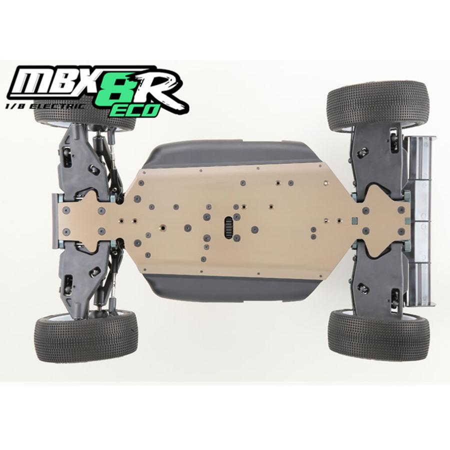 - Conception améliorée : Le châssis du MBX8R Eco est légèrement modifié pour accueillir la nouvelle géométrie de suspension. Il comprend un usinage supplémentaire pour améliorer l'affaissement et un biseautage à l'avant pour augmenter la garde au sol.
