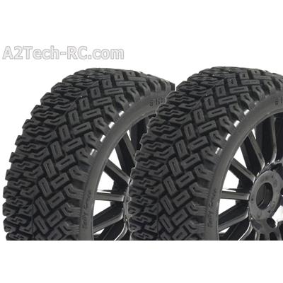 Pneus 1/8 RallyCross sur Jantes à batons noires(x2) - (Hexa17mm)