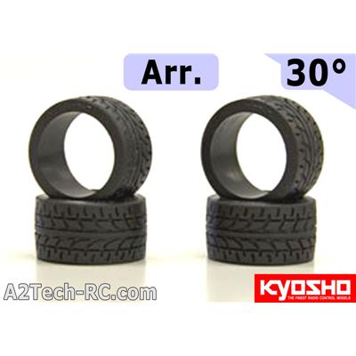 | | Pneu Racing Radial 30° LARGES pour ARRIERE (x4) Référence : MZW38-30 Marque : KYOSHO PNEUS GOMMES 1/27 pour RCP (Uréthane)