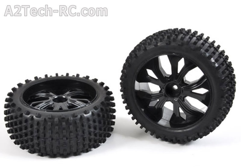 Pneus 1/10 TT Av/Ar sur jantes noires(2p) (Hexa12-d.int70-d.ext108mm)