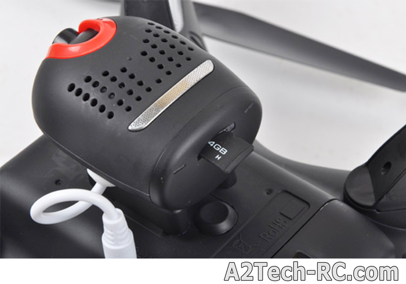 Quadrocoptère radiocommandé 4 voies 2,4GHz équipé d'une caméra HD orientable haut/bas 90° permettant l'enregistrement HD sur carte Micro SD et le retour vidéo en temps réel FPV sur smartphone (non fourni)
