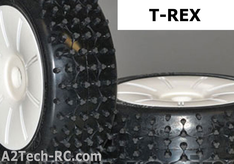 Pneus "T-Rex" 0/18 Montés/colles sur jantes FUSION Blanche (la paire)