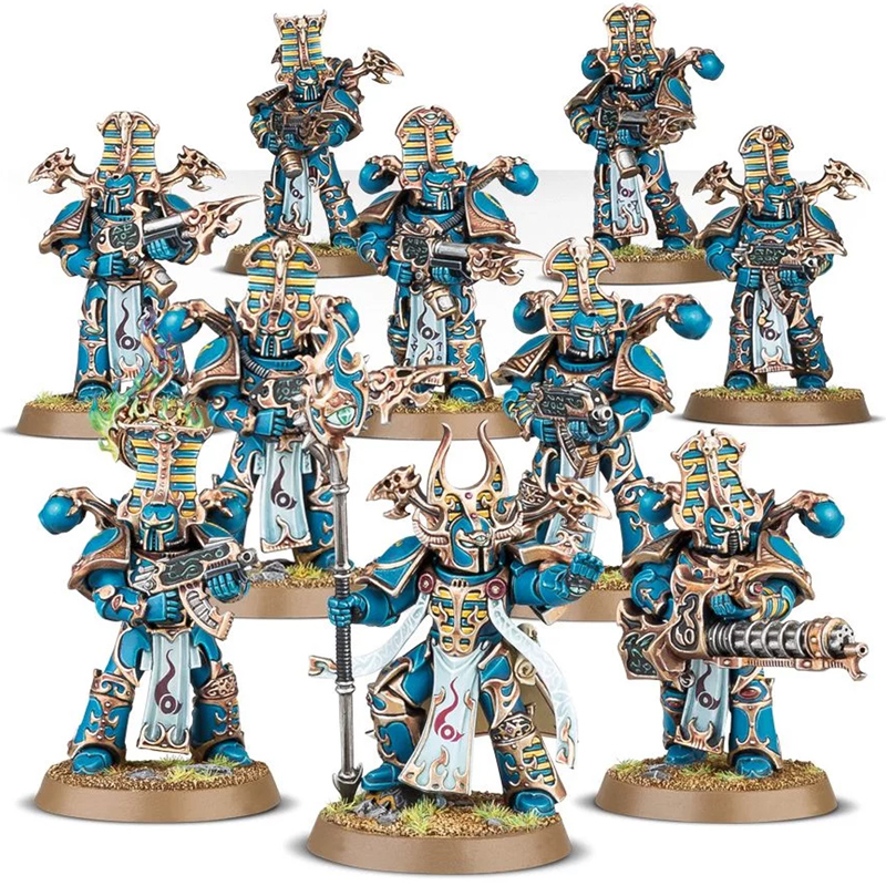 Du brouillard de la guerre sortent les Rubricae. Ces guerriers immortels furent pour certains d'authentiques psykers, avant qu'une antique malédiction les réduisent à l'état de coques vides - leur armure énergétique baroque ne contient plus que de la poussière étincelante.