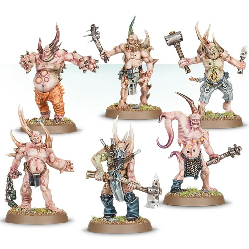 Les Poxwalkers eux-mêmes sont immondés, avec leur faciès blafard grimaçant, leurs mutations et leurs membres grêles couverts de furoncles et de plaies. Notons le Poxwalker avec respirateur et bottes (et ce n'est plus...), affligé des bénédictions de Nurgle et serrant une affreuse hache dentelée.