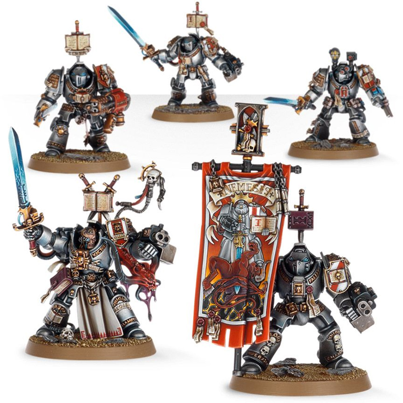 Cette boîte contient 153 composants en plastique, ainsi que cinq socles ronds de 40mm, avec lesquels assembler une escouade de Paladins Chevaliers Gris ou une escouade de Terminators Chevaliers Gris. Elle comporte diverses armes et améliorations, comme des glaives Némésis, des hallebardes de force Némésis, un marteau tueur de démons Némésis, un sceptre Némésis, un psycanon, un expurgateur et un incinérateur.